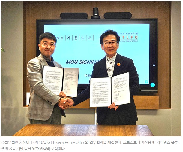 관련기사1 : [리걸타임즈] [로펌 iN] 가온, GT Legacy Family Office와 MOU 체결